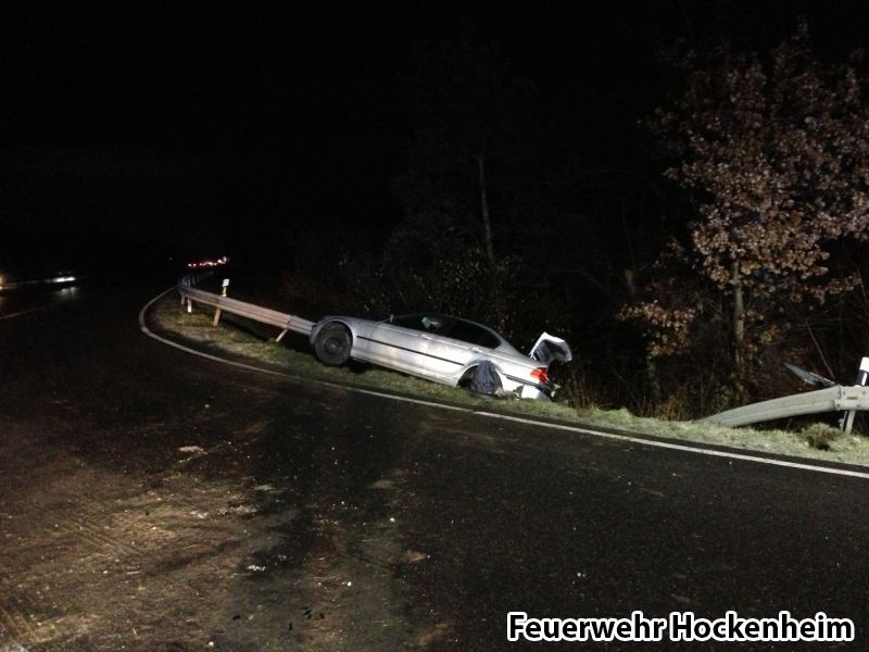 Vor Ort stellte sich heraus der der PKW nicht brennt sondern nur von der Fahrbahn abgekommen und in die Leitblanken gefahren ist.