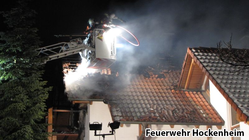 Da sich das Feuer bereits unter den Dachziegeln ausgebreitet hat musste ein Großteil des Daches abgedeckt werden.