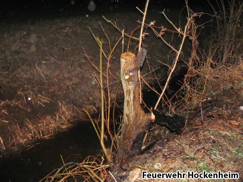 Im Bereich der Mörsch - Gärten brannte ein Baumstumpf. Der brennende/glühende Baumstumpf wurde mit dem Schnellangriff abgelöscht.