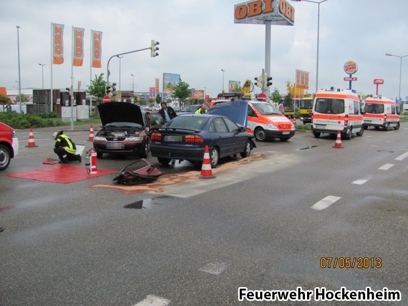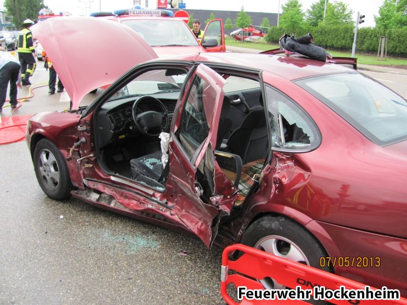 Zu einem Verkehrsunfall mit einer eingeklemmten Person wurde die Feuerwehr Hockenheim von der Leitstelle Rhein Neckar alarmiert. Vor Ort wurde die Person bereits vom Rettungsdienst versorgt und anschließend mit hydraulischem Rettungsgerät befreit. Danach wurden noch auslaufende Betriebsstoffe aufgenommen.