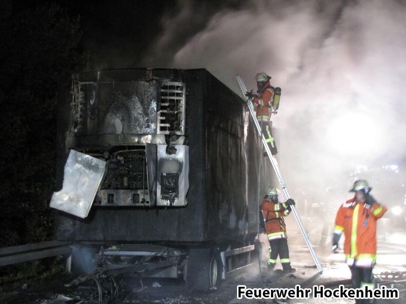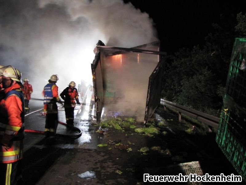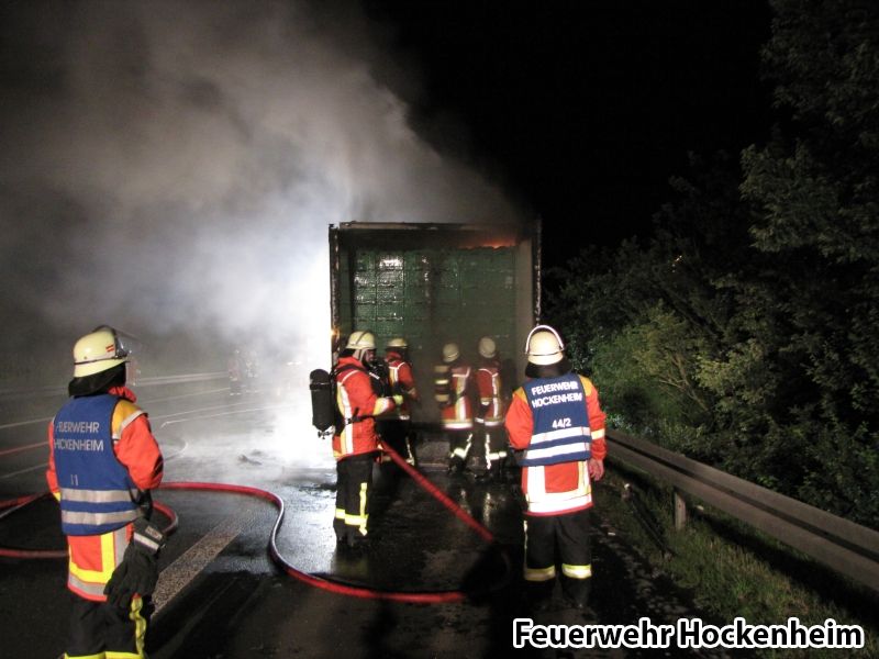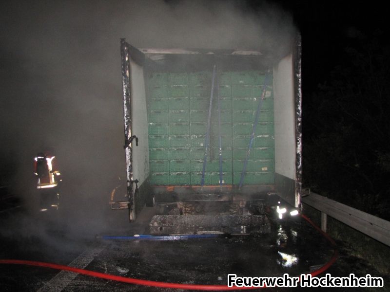 Die Feuerwehr Hockenheim wurde zu einem LKW Brand auf die A61 alarmiert.