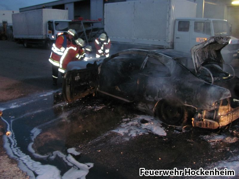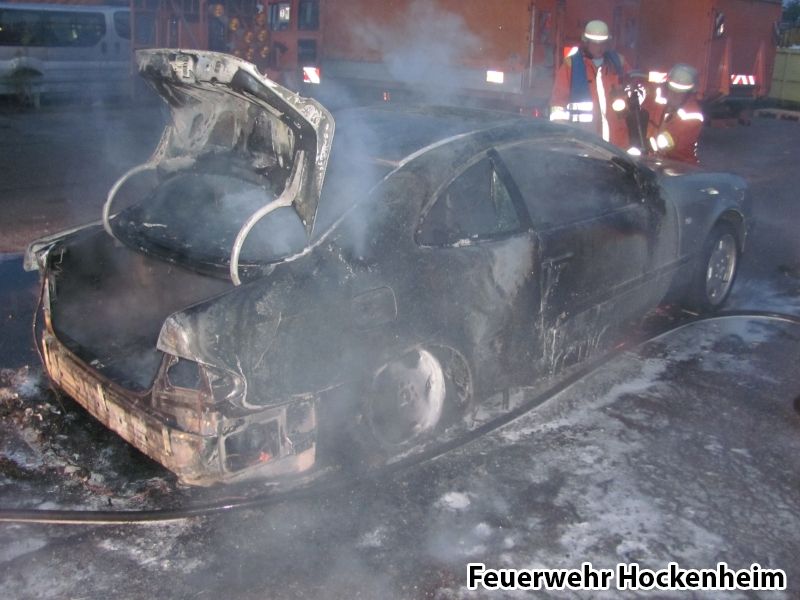 Zu einem PKW-Brand musste die Feuerwehr Hockenheim am Samstagabend ausrücken. Als die ersten Kräfte vor Ort eintrafen, brannte der PKW schon in voller Ausdehnung. Der Brand wurde unter Atemschutz mit dem Schnellangriff unter Zunahme von F-500 gelöscht.