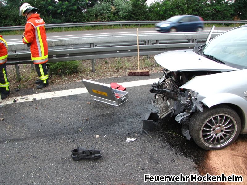 Ein PKW ist von der Fahrbahn abgekommen, schleuderte gegen die Leitplanke und kam auf der linken Spur zum Stehen. Die Unfallstelle wurde abgesichert und die Batterie abgeklemmt. Des Weiteren wurden die auslaufenden Betriebsstoffe aufgenommen.