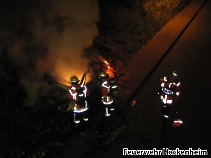 Ein PKW ist von der A6 abgekommen und in die Böschung der Unterführung der Ernst-Wilhelm-Sachs-Str. eingeschlagen. Bei Eintreffen an der Einsatzstelle stand der PKW in Vollbrand. Eine Person wurde durch den Rettungsdienst an der Autobahn betreut, eine weitere Person befand sich im brennenden Fahrzeug. Der PKW wurde mit dem Schnellangriff unter Atemschutz gelöscht. Nach der Freigabe durch die Autobahnpolizei wurde ein Zugang für den Bestatter zur Bergung hergestellt.