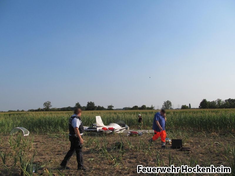 Die Feuerwehr Hockenheim wurde mit der Meldung "Flugzeug abgestürzt" zum Flugplatz Auchtweid alarmiert. Beim Eintreffen wurden die zwei Insassen bereits durch den Rettungsdienst betreut. Der Rettungsdienst wurde durch die Feurwehr unterstützt bis die Personen mit dem Hubschrauber in eine Klinik geflogen wurden.