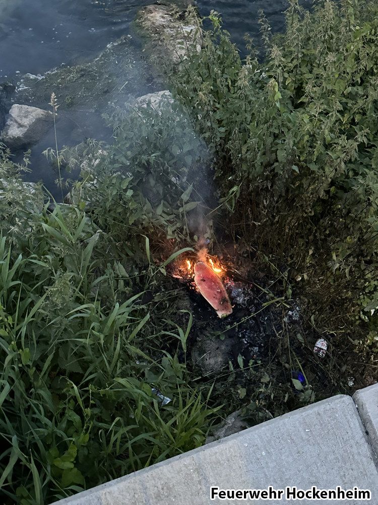 Die Feuerwehr Hockenheim wurde zu einem Vegetationsbrand im Bereich Untere Mühlstraße am Ufer des Kraichbachs alarmiert.