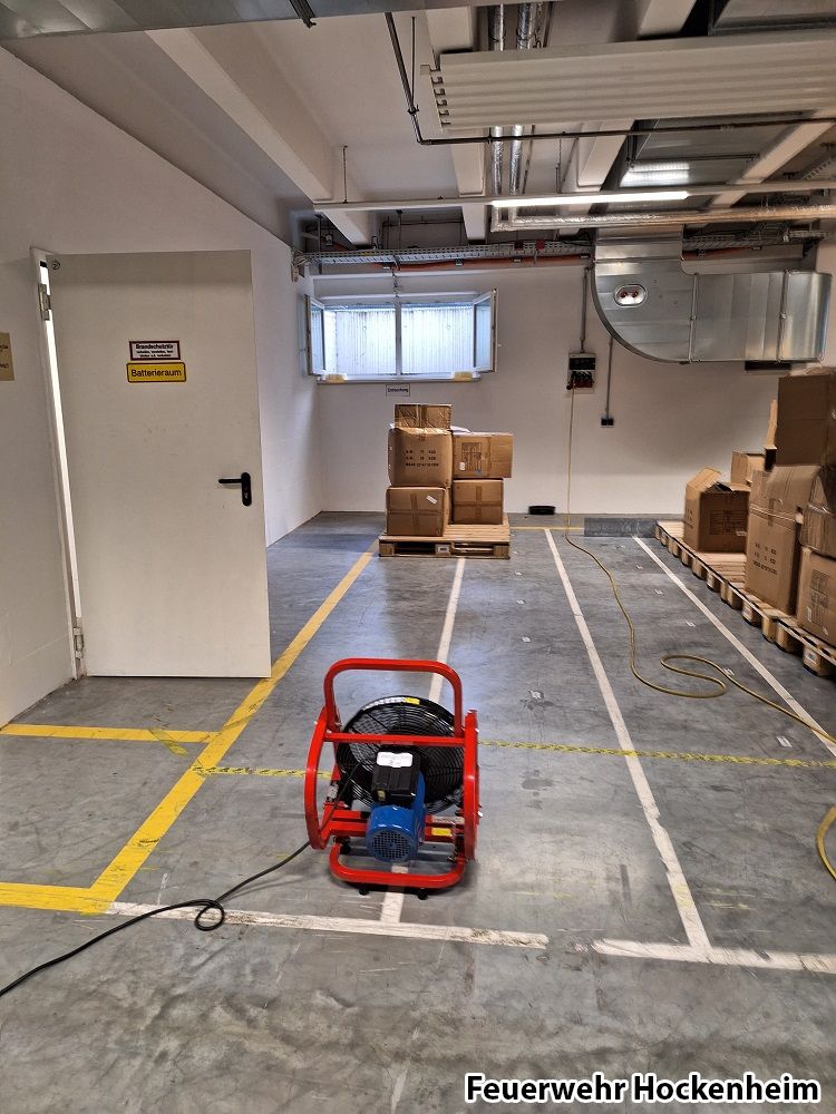 Durch das Löschfahrzeug wurde ein Löschangriff vorbereitet und der Batterieraum unter Atemschutz geöffnet. Um eine weitere Rauchausbreitung zu verhindern wurde ein Rauchvorhang installiert. Der Angriffstrupp konnte einen Brand in einem Elektroverteiler feststellen. Ein Haustechniker hat den Verteilerschrank stromlos geschaltet. Anschließend wurde der verrauchte Bereich mit 2 Elektrolüftern belüftet und mit einer Wärmebildkamera kontrolliert. Nachdem der betroffene Bereich rauchfrei war und die Temperatur nicht mehr anstieg, wurde die Einsatzstelle an den Betreiber übergeben. In der Zwischenzeit wurde eine Fachfirma hinzugezogen.