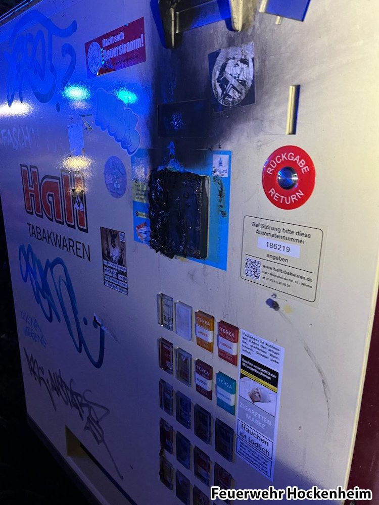 Die Feuerwehr Hockenheim wurde zu einem brennenden Zigarettenautomaten in die Bahnhofstraße alarmiert.