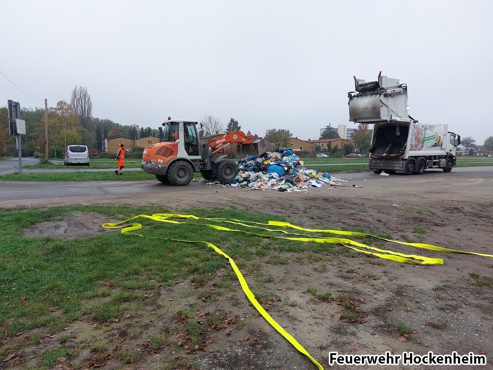 Bei Eintreffen an der Einsatzstelle hatte der Fahrer des Müllautos bereits den Inhalt ausgeleert. Es konnte kein Rauch und Feuer festgestellt werden. Der Bauhof wurde mit einem Radlader zum auseinanderziehen des Mülls hinzugezogen. Keine Tätigkeit für die Feuerwehr.
