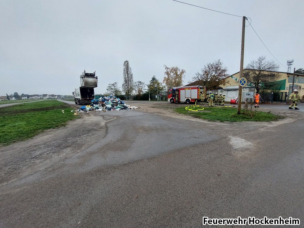 Die Feuerwehr Hockenheim wurde zu einem qualmenden Müllauto alarmiert.