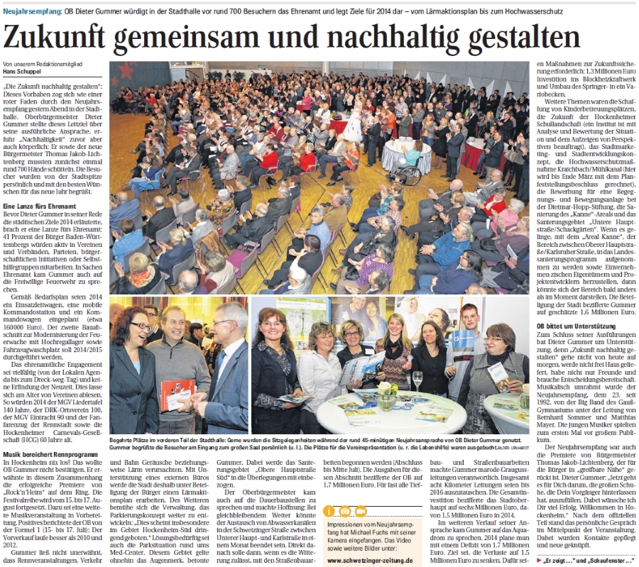 „Die Zukunft nachhaltig gestalten": Dieses Vorhaben zog sich wie ein roter Faden durch den Neujahrsempfang gestern Abend in der Stadthalle. Oberbürgermeister Dieter Gummer stellte dieses Leitziel....