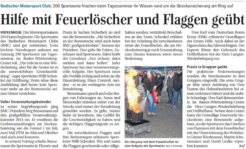 Die Motorsportsaison 2014 kann beginnen: Die Sportwarte des Badischen Motosport Clubs (BMC) sind gut vorbereitet. Trotz leichten Nieselregens nahmen am Samstag 200 Sportwarte am Tagesseminar....