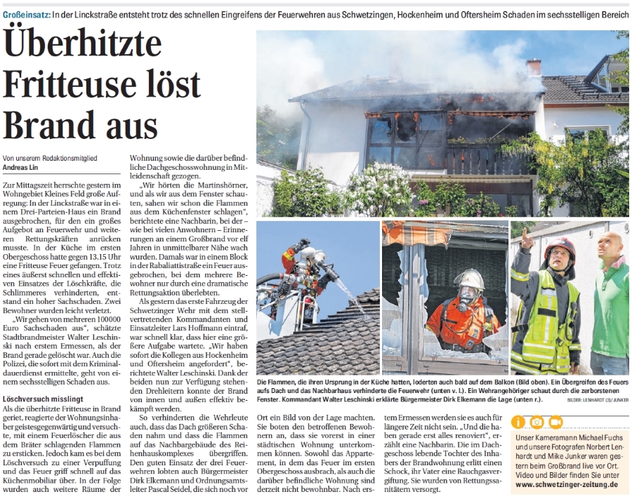 Zur Mittagszeit herrschte gestern im Wohngebiet Kleines Feld große Aufregung: In der Linckstraße war in einem Drei-Parteien-Haus ein Brand ausgebrochen, für den ein großes Aufgebot an Feuerwehr...