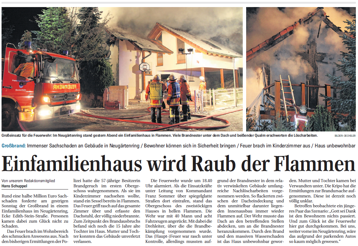 Großbrand: Immenser Sachschaden an Gebäude in Neugärtenring / Bewohner können sich in Sicherheit bringen / Feuer brach im Kinderzimmer aus / Haus unbewohnbar