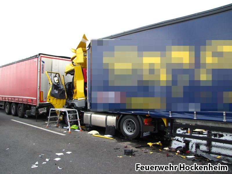 Auf der BAB 61 kam es erneut zu einem Auffahrunfall, an dem zwei Sattelzüge beteiligt waren. Der Fahrer des auffahrenden LKW wurde in seinem Führerhaus eingeklemmt und musste mit Hilfe von zwei Hilfeleistungssätzen befreit werden. Anschließend wurde er dem Rettungsdienst übergeben. Desweiteren wurde die Einsatzstelle abgesichert und auslaufende Betriebsstoffe aufgenommen.