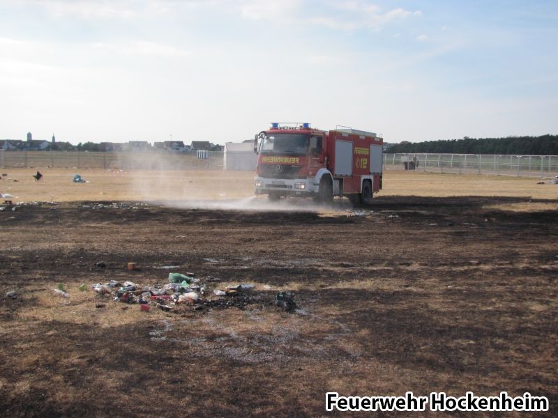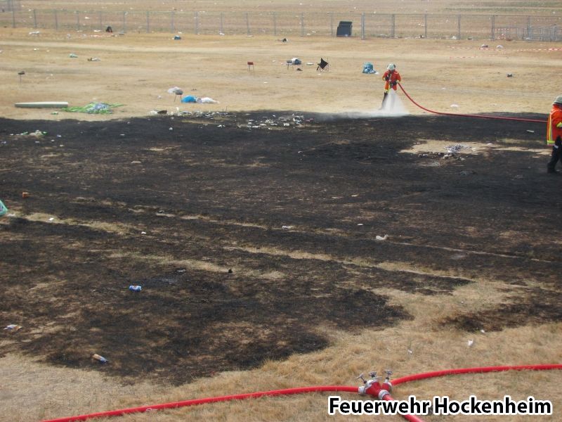 Auf dem Campingplatz C5Z kam es zu einem Flächenbrand von ca. 600 m². Dieser wurde mit 2 C-Rohren bekämpft. Anschließend wurde der Bereich mit der Bodensprühanlage des TLF 20/40 SL gewässert.