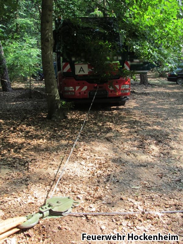 Auf dem Campingplatz C4 hat sich ein Müllfahrzeug festgefahren. Die Befreiung mittels technischen Gerät war leider nicht erfolgreich. Die Firma kümmert sich selbstständig um eine Fachfirma zur Befreiung.