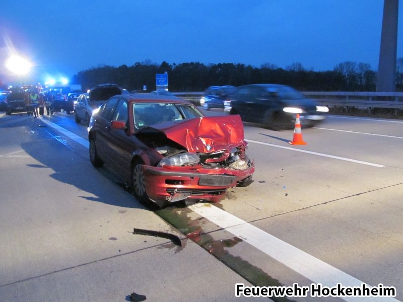 Wir wurden zu einem Verkehrsunfall mit 4 beteiligten PKW auf die BAB 6 in Fahrtrichtung Heilbronn alarmiert. Bei der Erkundung vor Ort stellte sich heraus, dass keine Personen eingeklemmt waren. An den beteiligten Fahrzeugen wurden die Batterien abgeklemmt. Zudem wurde die Einsatzstelle abgesichert und ausgeleuchtet.