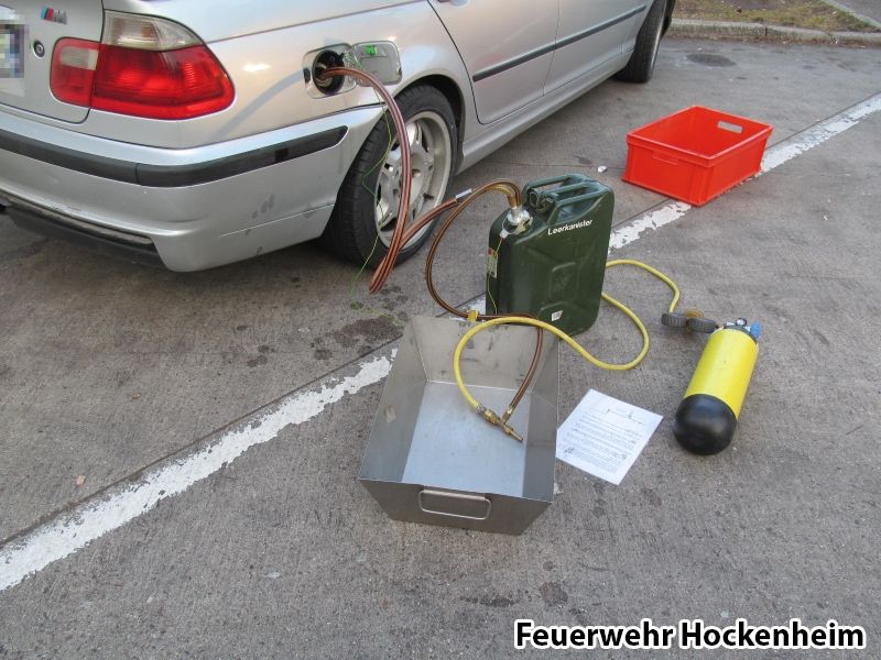Aus einem PKW läuft Kraftstoff aus. Die Quelle war leider nicht feststellbar. Als Erstmaßnahme wurde eine Auffangwanne unter den PKW gestellt. Desweiteren wurde mittels Ölbindemittel die auslaufenden Betriebsstoffe eingedämmt. Danach wurde versucht den Kraftstoff abzupumpen. Dies hat nicht funktioniert. Danach wurde der PKW in schräglage gebracht, dass kein weiterer Kraftstoff ausläuft. Der PKW wurde anschließend dem Abschleppdienst übergeben.
