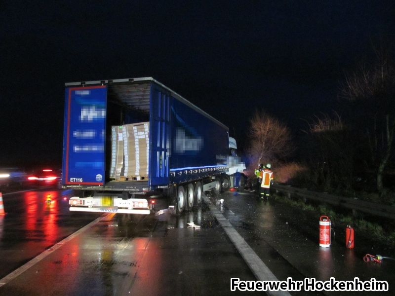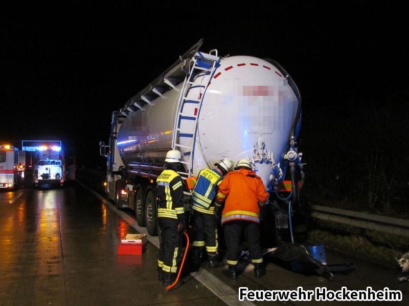 Wir wurden mit Sichtwort "Verkehrsunfall LKW mit Gefahrgut" auf die BAB 6 alarmiert. Vor Ort stellte sich glücklicherweise relativ schnell heraus, dass keiner der beiden beteiligten LKWs Gefahrgut geladen hatte. Personen waren glücklicherweise auch keine eingeklemmt. Eine Person wurde bereits vom Rettungsdienst betreut. Ein Silozug hatte ein paar Leckstellen und verlor Quarzsand auf der Straße. Dieses Leck wurde mit einem Holzkeil verschlossen.