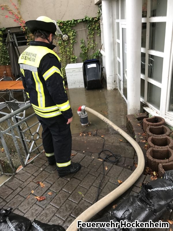 Nachdem der Wasserstand im Mühlkanal abgesunken war, wurde begonnen mit Tauchpumpen das Wasser in der Shisha Bar abzupumpen. Parallel dazu wurde das Wasser im Keller und in der Tiefgarage in dem Gebäude abgepumpt. Am Ende kamen noch 3 Wassersauger zum Einsatz.