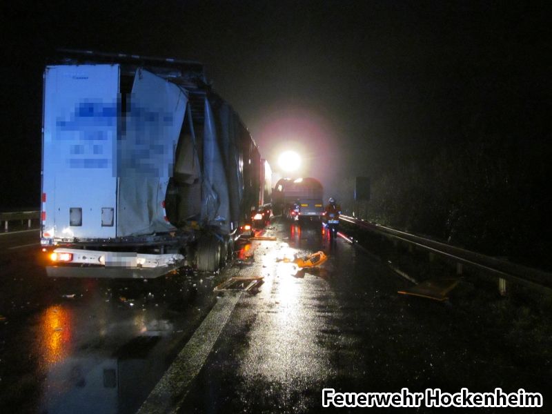 Wir wurden zur Unterstützung für die Feuerwehr Walldorf auf die BAB6 in Fahrtrichtung Heilbronn alarmiert. Wir mussten die Feuerwehr Walldorf unterstützen, weil diese schon durch einen anderen Einsatz gebunden waren. Auf der BAB6 kam es 1 km nachdem Walldorfer Kreuz zu einem Verkehrsunfall mit 3 beteiligten LKW. Es war keine Person eingeklemmt. Wir mussten jediglich auslaufende Betriebsstoffe aufnehmen. Eine der Zugmaschinen hatte sich den Kraftstofftank komplett aufgerissen gehabt. Nach Rücksprache mit der Polizei wurde eine Fachfirma zur Reinigung der Straße bzw. zum ausbaggern des Erdreichs beauftragt. Während der Maßnahme wurde der Brandschutz an der Einsatzstelle sichergestellt. Mit dem Verkehrssicherungsanhänger wurde die Einsatzstelle abgesichert.