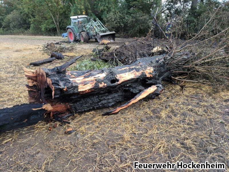 Des weiteren mussten 2 Bäume gefällt werden. Im Einsatzverlauf wurde ein Landwirt mit einem Traktor zur Unterstützung angefordert.