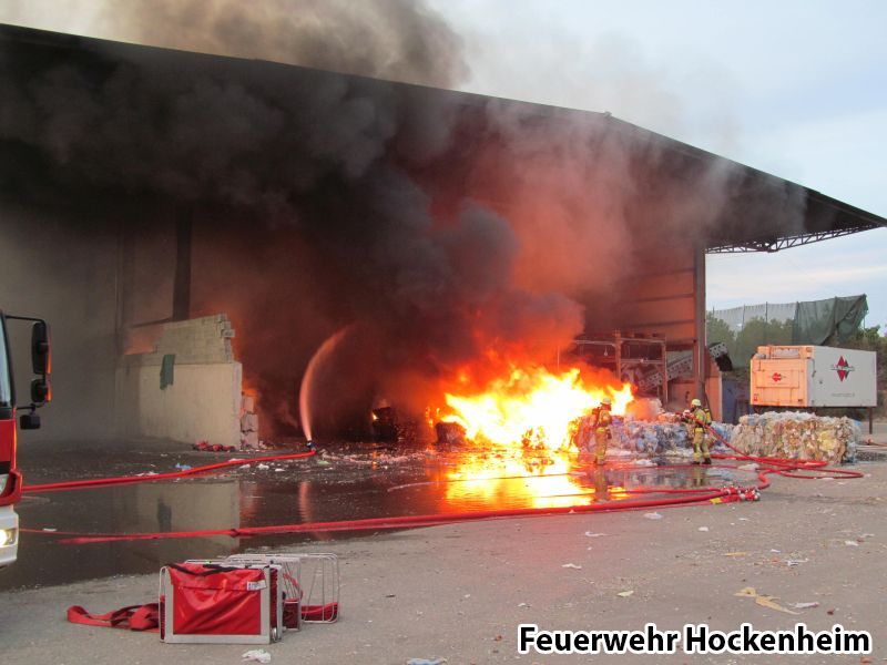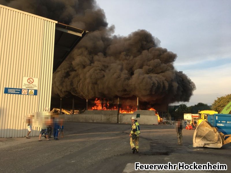 Die Feuerwehr Hockenheim wurde zu einem Lagerhallenbrand alarmiert. Bei der Einsatzstelle handelte es sich um Reilinger Gemarkung. Während der Anfahrt wurden sofort weitere Feuerwehren alarmiert, da die schwarze Rauchwolke schon von weitem sichtbar war.