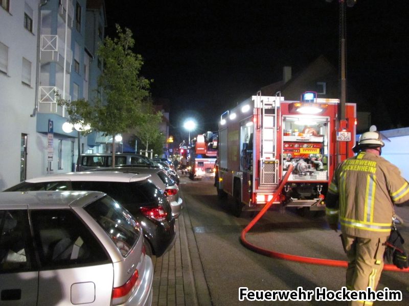 Im 1. Obergeschoss eines Wohn- und Geschäftsgebäudes kam es zu einem Brand in der Küche. Der Bewohner rettete sich vor Eintreffen der Feuerwehr auf den Balkon. Dort wurde er bis zur Rettung über die Steckleiter betreut. Parallel ging 1 Trupp unter Atemschutz mit 1 C-Rohr in die Brandwohnung zur Brandbekämpfung vor. Neben der Brandbekämpfung des Zimmerbrandes ging ein weiterer Trupp unter Atemschutz in das Treppenhaus, um dieses sowie die weiteren Wohnungen, zu kontrollieren. Im weiteren Einsatzverlauf wurden 2 Lüfter eingesetzt, das Brandgut aus der Wohnung verbracht sowie die Tür der Brandwohnung wieder notdürftig verschlossen. Die Bewohner, welche das Gebäude verlassen hatten, wurden vor Ort betreut und je Stockwerk wieder in die Wohnungen gelassen, nach dem diese mit dem Meßgerät kontrolliert waren. Abschließend wurde die Einsatzstelle an die Polizei übergeben.