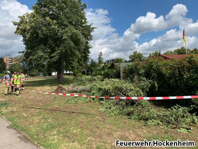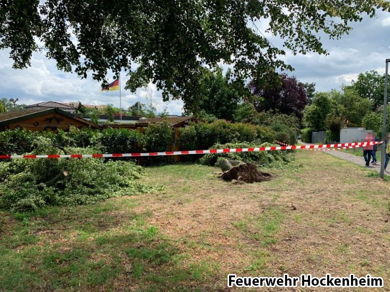 Ein Baum war aus dem öffentlichen Verkehrsraum auf zwei Privatgrundstücke gestürzt. Der Baum wurde mittels Kettensäge zerkleinert und der Bereich danach abgesperrt.