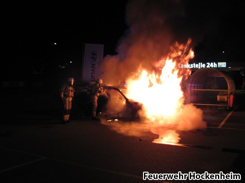 Die Feuerwehr Hockenheim wurde mit dem Stichwort "PKW Brand" auf den Globus Parkplatz alarmiert. Beim Eintreffen stand ein PKW im Vollbrand. Dieser wurde unter Atemschutz von einem Trupp abgelöscht.