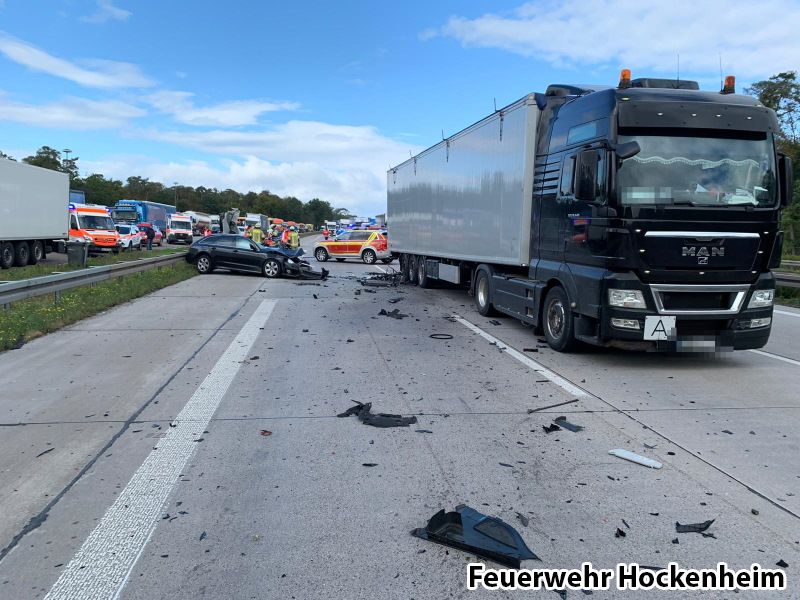 Die Feuerwehr Hockenheim wurde zu einem schweren Verkehrsunfall auf die BAB 6 alarmiert. Vor Ort ist ein PKW aufgrund von einem Stau auf einen LKW aufgefahren. Der PKW Fahrer wurde bei diesem Unfall eingeklemmt und ist ums Leben gekommen. Gemeinsam mit der Feuerwehr Schwetzingen wurde die Person nach Freigabe durch die Polizei befreit. Anschließend wurde noch die Straße gereinigt.