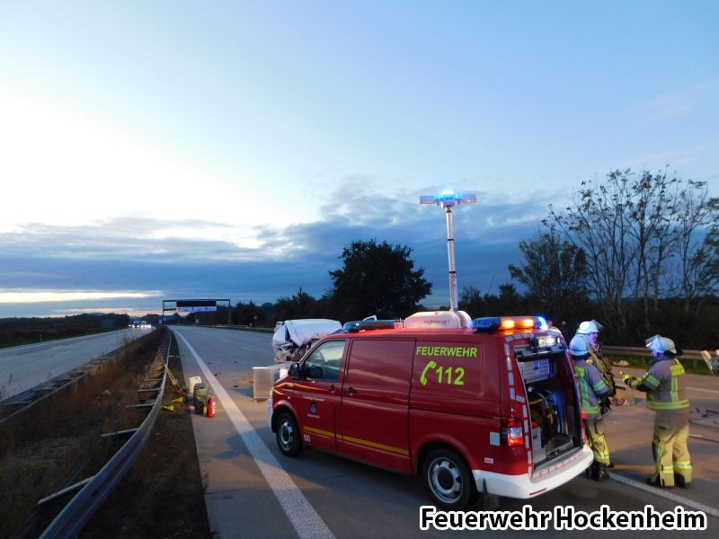 Die Feuerwehr Hockenheim wurde zu einem Verkehrsunfall auf die BAB6 alarmiert. Vor Ort kam es zu einem Verkehrsunfall mit mehreren beteiligten Fahrzeugen. Es waren keine Personen in dem Fahrzeugen eingeklemmt. Der Brandschutz wurde sichergestellt und die Fahrbahn grob gereinigt. Auslaufende Betriebsmittel wurde mit Bindemittel aufgenommen.
