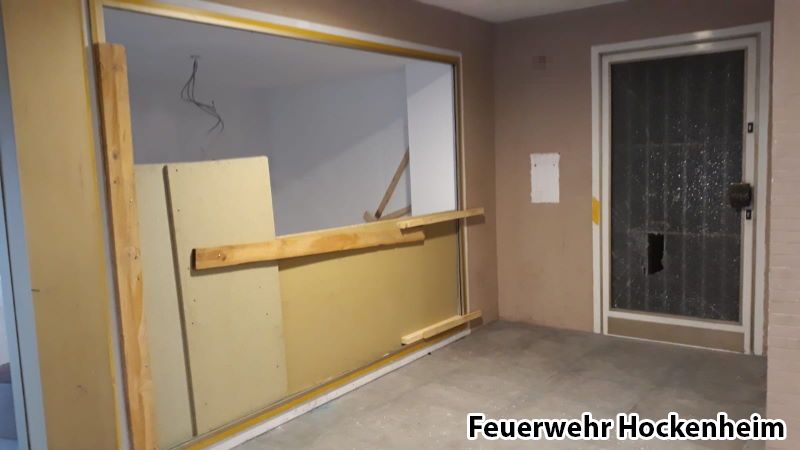 Im Nachgang zum Faschingsumzug musste die Feuerwehr Hockenheim eine eingeschlagene Fensterscheibe verschließen. Ebenso musste dort eine Haustür verschlossen werden.