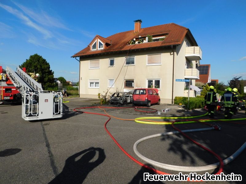 Die Feuerwehr Hockenheim wurde zur Überlandhilfe mit der Drehleiter nach Altlußheim alarmiert. Mittels der Drehleiter musste das Dach eines Mehrfamilienhauses nach einem PKW Brand kontrolliert werden. Das Dach wurde mittels Wärmebildkamera kontrolliert. Danach wurde das Dach wieder eingedeckt.