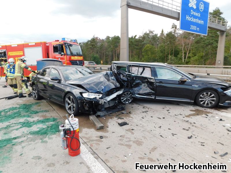 Die Feuerwehr Hockenheim wurde mit dem Stichwort "Vekehrsunfall mehrere PKW" auf die BAB 6 alarmiert. Vor Ort kam es zu einem Verkehrsunfall auf der linken und mittlereren Fahrspur. Glücklicherweise gab es trotz mehrerer Verletze keine eingeklemmte Person. An den PKW wurden die Batterien abgeklemmt. Der Brandschutz wurde sichergestellt und die Einsatzstelle abgesichert bis die PKW durch einen Abschleppdienst aufgenommen wurden.
