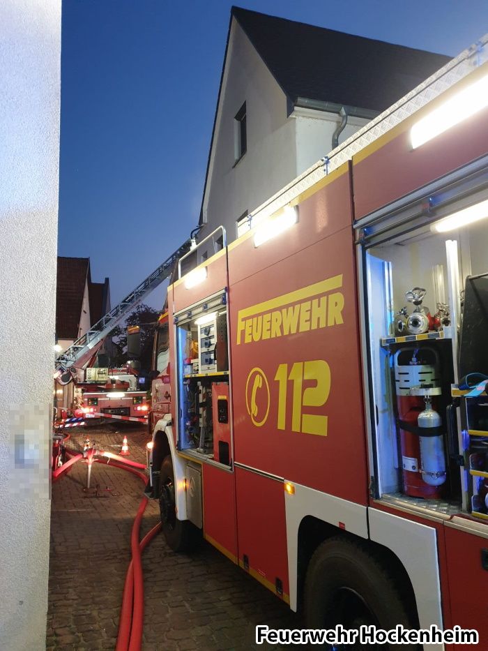 Die Feuerwehr Hockenheim wurde zu einem Dachstuhlbrand in die Mittlere Mühlstraße alarmiert. Bei Eintreffen an der Einsatzstelle brannte der Dachstuhl bereits in voller Ausdehnung.