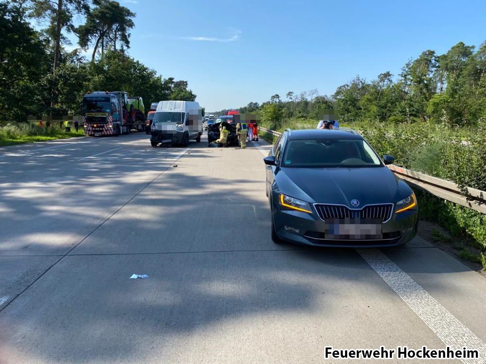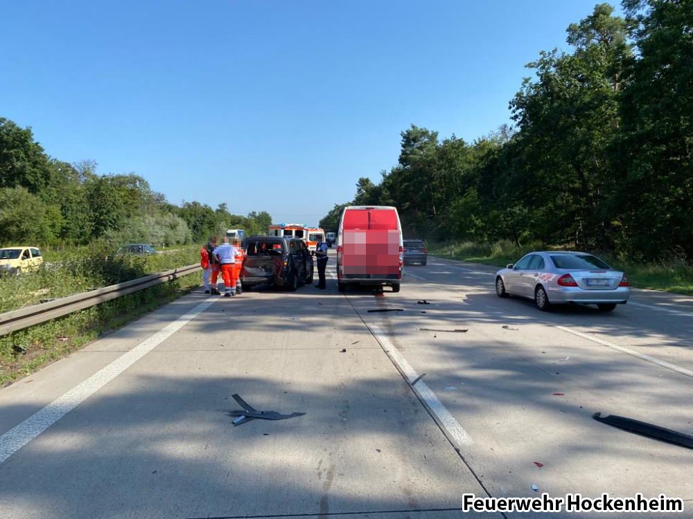 Die Feuerwehr Hockenheim wurde zu einem Verkehrsunfall mit vier beteiligten PKW auf die BAB 6 in Fahrtrichtung Heilbronn alarmiert. Bei Eintreffen waren keine Personen eingeklemmt und die verletzten Unfallbeteiligten wurden bereits durch den Rettungsdienst betreut. An den Unfallfahrzeugen wurden die Batterien abgeklemmt und auslaufende Betriebsstoffe aufgenommen. Außerdem wurde die Einsatzstelle während der laufenden Maßnahmen abgesichert. In einem am Unfall beteiligten Kleintransporter wurden lebendige Tiere (Fische) transportiert. Die Polizei organisierte hierfür ein Ersatzfahrzeug.