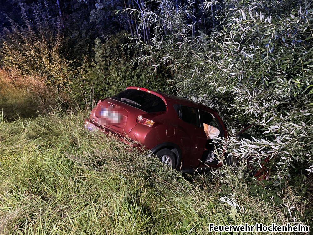 Die Feuerwehr Hockenheim wurde mit dem Stichwort "Verkehrsunfall, PKW in Graben" alarmiert. Bei Eintreffen Polizei und Rettungsdienst vor Ort. Ein PKW war von der Straße abgekommen und stand vorwärts im Graben. Eine Person noch im Fahrzeug aber nicht eingeklemmt. Die Einsatzstelle wurde abgesichert und ausgeleuchtet. Außerdem wurde der Rettungsdienst dabei unterstützt, die Person aus dem Fahrzeug zum RTW zu verbringen. Das Unfallfahrzeug wurde ohne Feststellung auf auslaufende Betriebsstoffe kontrolliert. Nach Rücksprache mit Polizei keine weitere Tätigkeit.
