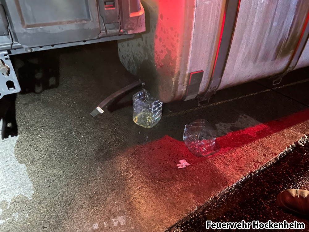 Mit der Meldung "Auslaufende Betriebsstoffe, LKW verliert Kraftstoff" wurde die Feuerwehr Hockenheim auf die BAB61 alarmiert. Bei Eintreffen Polizei bereits vor Ort und die Autobahnmeisterei bereits verständigt. Im Tank eines LKWs steckte ein Flacheisen, weshalb aus dem Leck Kraftstoff auslief. Der Stellplatz des LKW und Teile der Fahrbahn auf dem Parkplatz waren mit Kraftstoff verunreinigt. Das Leck wurde mittels Leckpaste abgedichtet und verschlossen. Der Gullieinlass auf dem Parkplatz wurde mit Bindemittel eingedeicht. Das Wasserwirtschaftsamt wurde verständigt. Abschließend wurde die Einsatzstelle an die Polizei übergeben.