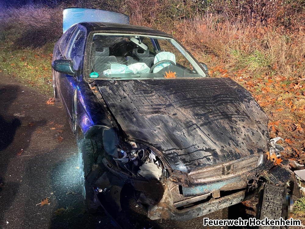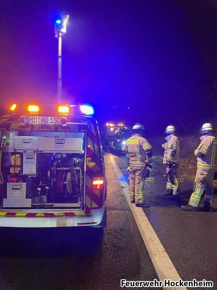 Die Feuerwehr Hockenheim wurde zu einem Verkehrsunfall auf die B39 alarmiert. Beim Eintreffen lag ein PKW auf der Seite im Graben. Es waren keine Personen eingeklemmt. Eine verletzte Person wurde bereits durch den Rettungsdienst versorgt. Die Einsatzstelle abgesichert und ausgeleuchtet. Der PKW wurde auf auslaufende Betriebsstoffe kontrolliert und anschließend aufgerichtet. Batterie des Fahrzeugs abgeklemmt und Einsatzstelle abschließend an Polizei und Abschleppunternehmen übergeben.