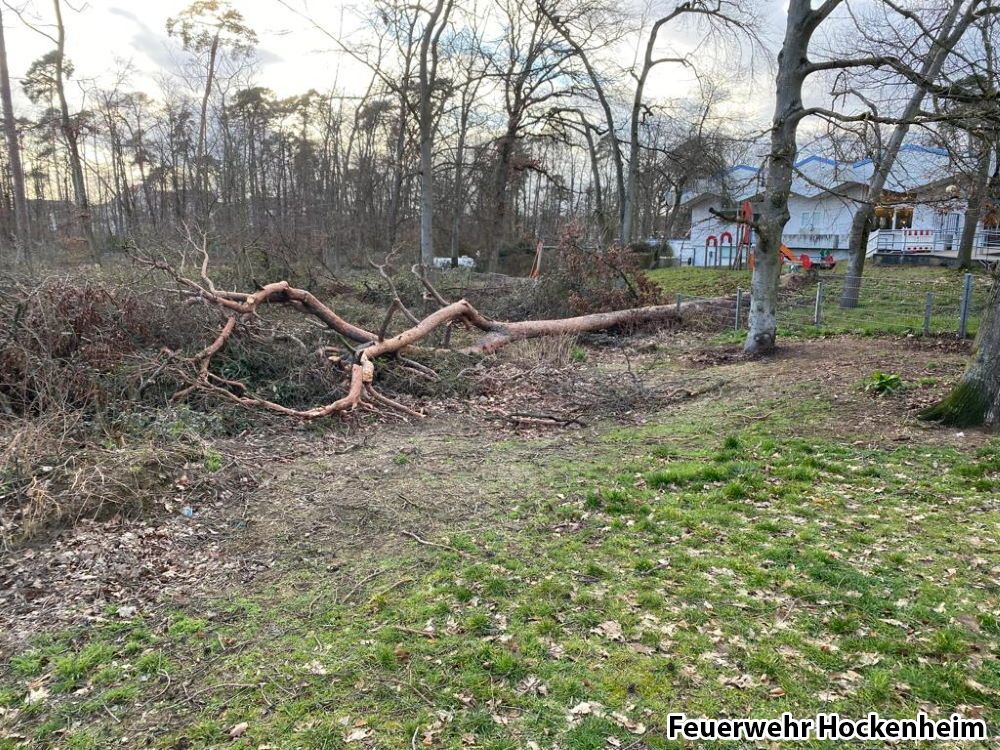 Die Feuerwehr Hockenheim wurde zu einem Sturmschaden auf die Raststätte West alarmiert. Beim Eintreffen vor Ort lag ein Baum auf dem Spielplatz. Von diesem ist aber keine Gefahr mehr ausgegangen. Keine weitere Tätigkeit für die Feuerwehr.