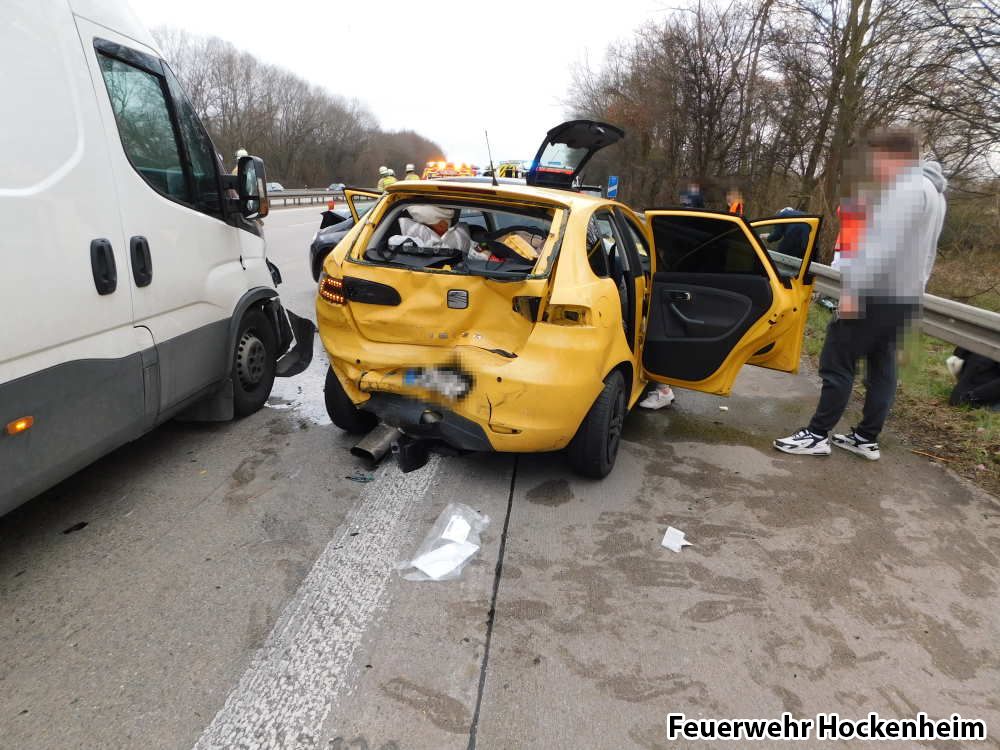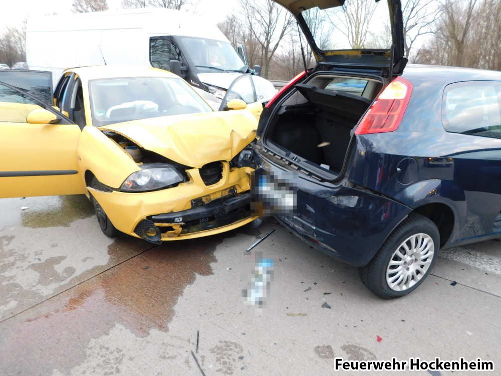Mit dem Stichwort "Verkehrsunfall" wurde die Feuerwehr Hockenheim auf die BAB 6 alarmiert. Vor Ort waren drei PKW und ein Kleintransporter verunfallt. Es waren glücklicherweise keine Personen eingeklemmt. Die Einsatzstelle wurde abgesichert, die Batterien der Unfallfahrzeuge wurden abgeklemmt und der Brandschutz sichergestellt. Im Anschluss wurde die Einsatzstelle an die Polizei übergeben.