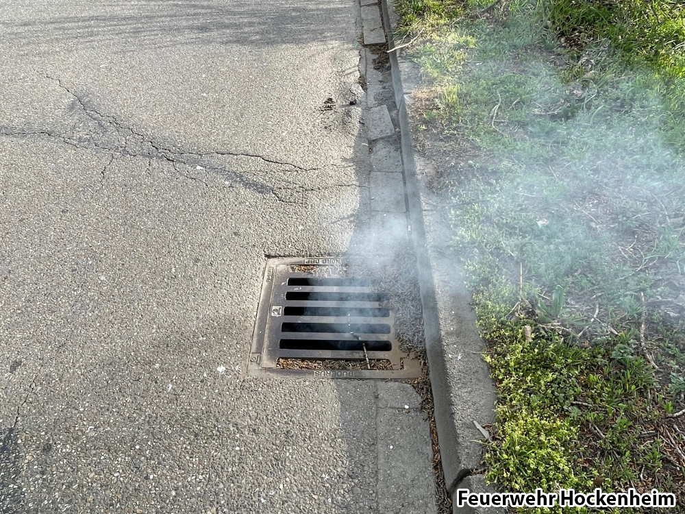 Mit dem Stichwort "Kleinfeuer, Rauchentwicklung aus Gulli" wurde die Feuerwehr Hockenheim in die Talhausstraße alarmiert. Vor Ort brannte in einem Gulli ein Senkkasten samt Inhalt. Das Feuer wurde mittels Mulde und Wasser gelöscht und der Senkkasten geleert. Während der Maßnahmen wurde die Einsatzstelle abgesichert.