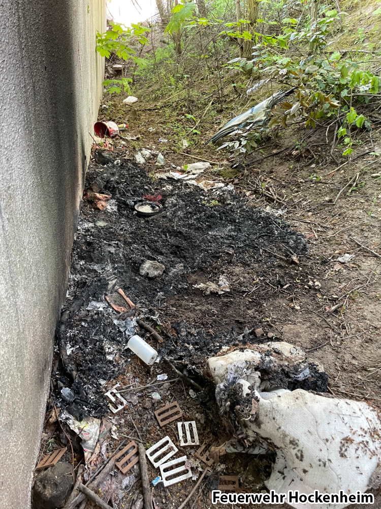 Die Feuerwehr Hockenheim wurde mit der Meldung "Brandnachschau - Feuer bereits gelöscht" in die Heinrich-Böll-Straße alarmiert. Beim Eintreffen war eine Einweiserin vor Ort. Im Gebüsch neben ein paar Garagen war noch eine glimmende Feuerstelle feststellbar. Der Bereich wurde mittels Schnellangriff des Löschfahrzeugs abgelöscht und bewässert. Außerdem wurde das Brandgut mittels Dunggabel auseinder gezogen. Abschließend wurde die Brandstelle mittels Wärmebildkamera kontrolliert.