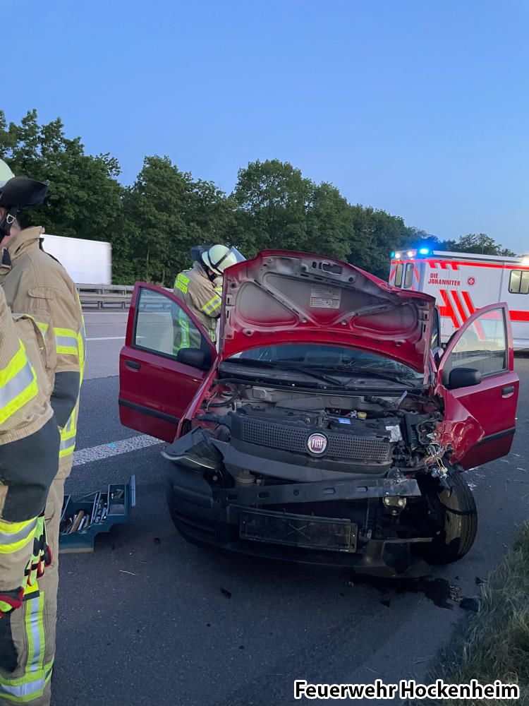 Die Feuerwehr Hockenheim wurde mit der Meldung "Verkehrsunfall auf der BAB 6 - unklare Lage" alarmiert. Vor Ort kam es zu einem Verkehrsunfall mit zwei beteiligten PKW.