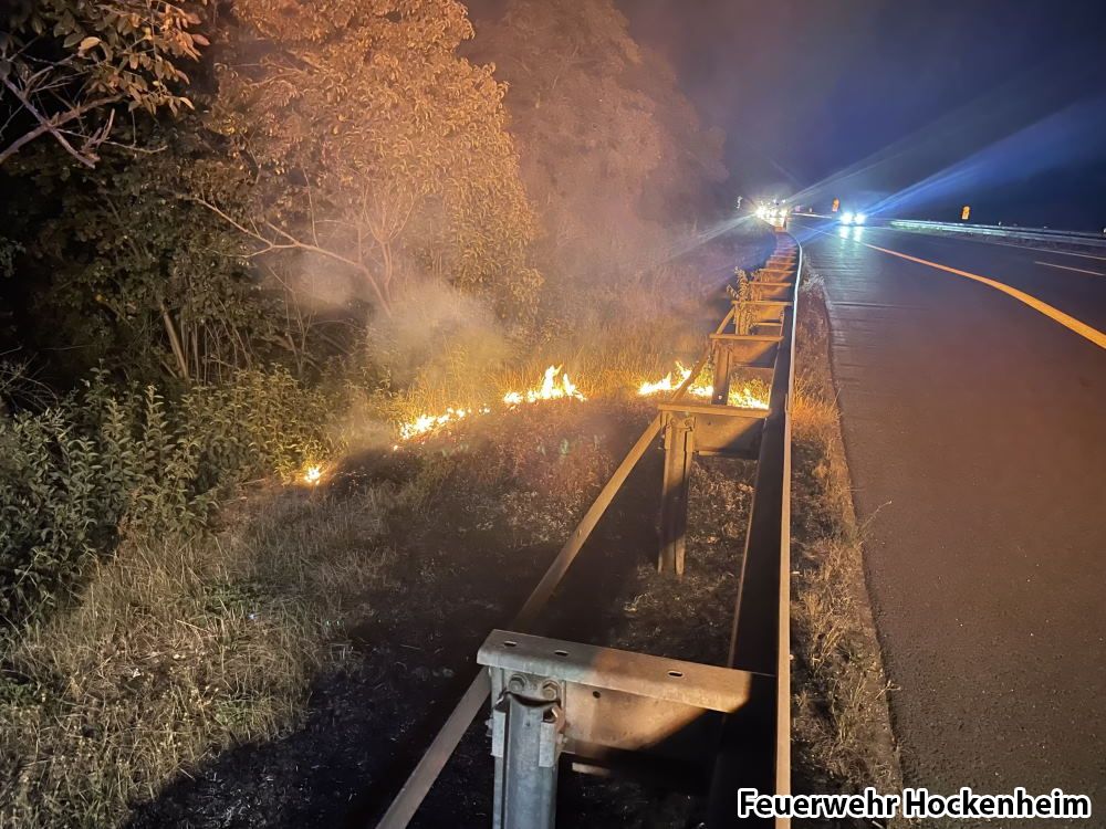 Die Feuerwehr wurde zu einem Flächenbrand an der BAB 61 in Fahrtrichtung Speyer mit der Meldung "mehrere Brandstellen" alarmiert. Eine Brandstelle konnte auf der BAB 61 in Fahrtrichtung Speyer, kurz vor der Abfahrt auf die L722 ausgemacht werden. Weitere Brandstellen konnte nicht mehr gefunden werden. Der Brand wurde mittels Schnellangriffseinrichtung des Löschfahrzeugs gelöscht. Auf der Rückfahrt wurde dabei der Grünstreifen entlang der BAB 61 kontrolliert.