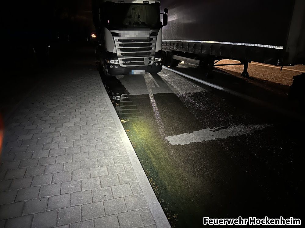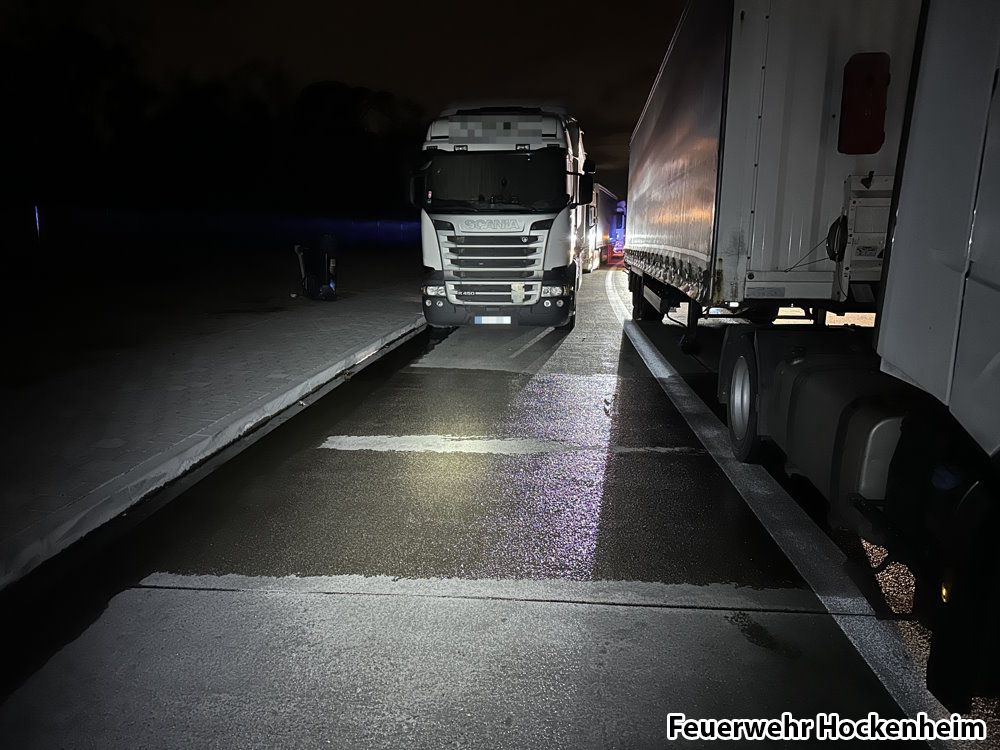 Die Feuerwehr Hockenheim wurde zu auslaufenden Betriebsstoffe auf der BAB 6 alarmiert. Auf der BAB 61 wurde eine größere Kraftstoffspur (Diesel) vorgefunden. Die Feuerwehr Speyer war bereits im Einsatz und forderte die Feuerwehr Hockenheim zur Unterstützung an. Durch die Autobahnpolizei wurde der verursachende und havarierte LKW auf einem Parkplatz auf der BAB 6 auf Höhe von KM 585,5 in Fahrtrichtung Heilbronn festgestellt. Nach einem Defekt am Tank liefen nach wie vor größere Mengen Dieselkraftstoff aus. Mittels VSA wurde der Parkplatz in Absprache mit der Polizei vollgesperrt. Zunächst wurde eine Mulde unter dem Tankleck installiert. Anschließend wurde das Leck am Tank mittels Leckstopp notdürftig abgedichtet, sodass kein Dieselkraftstoff mehr austreten konnte. Die Dieselpfützen am Bordstein wurden mit Bindemittel eingedeicht, sodass sich diese nicht weiter ausbreiten konnten. Durch die Autobahnpolizei wurde die Autobahnmeisterei zur Reinigung der betroffenen Flächen hinzugezogen. Durch den betroffenen LKW-Fahrer wurde eine Servicefirma zur Reparatur des Schadens bestellt. Dem LKW-Fahrer wurde die Weiterfahrt bis zur Reparatur polizeilich untersagt. Im weiteren Verlauf wurde die vom LKW zurückgelegte Fahrtstrecke auf der BAB 6 und der BAB 61 durch den ELW nochmals abschließend kontrolliert. Die Kontrolle ergab, dass auf der Strecke kein weiterer Einsatz der Feuerwehr erforderlich war. Die Einsatzstelle wurde an die Autobahnpolizei übergeben.
