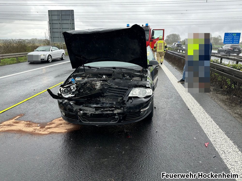Gemeldet war ein Verkehrsunfall mit drei beteiligten PKW auf der BAB 61 in Fahrtrichtung Speyer. Polizei, Rettungsdienst und Notarzt waren bei Eintreffen bereits vor Ort. Drei PKW am Unfall beteiligt. Es waren keine Personen eingeklemmt. Von den drei Unfalfahrzeugen wurden die Batterien abgeklemmt. Außerdem wurden ausgelaufene Betriebsstoffe abgestreut. Daneben wurde die Einsatzstelle mittels VSA abgesichert. Durch das TLF wurde der Brandschutz an einem rauchenden Unfallfahrzeug sichergestellt. Bis zum Eintreffen weiterer Einsatzmittel des Rettungsdienstes wurde eine verletzte Person durch die Feuerwehr betreut. Nach Rücksprache mit der Autobahnpolizei konnte der Rüstzug gegen 16:15 Uhr aus dem Einsatz entlassen werden. Auf Wunsch der Polizei verblieben KEF und VSA bis ca. 18:15 Uhr zur Absicherung der Unfallstelle weiter vor Ort.