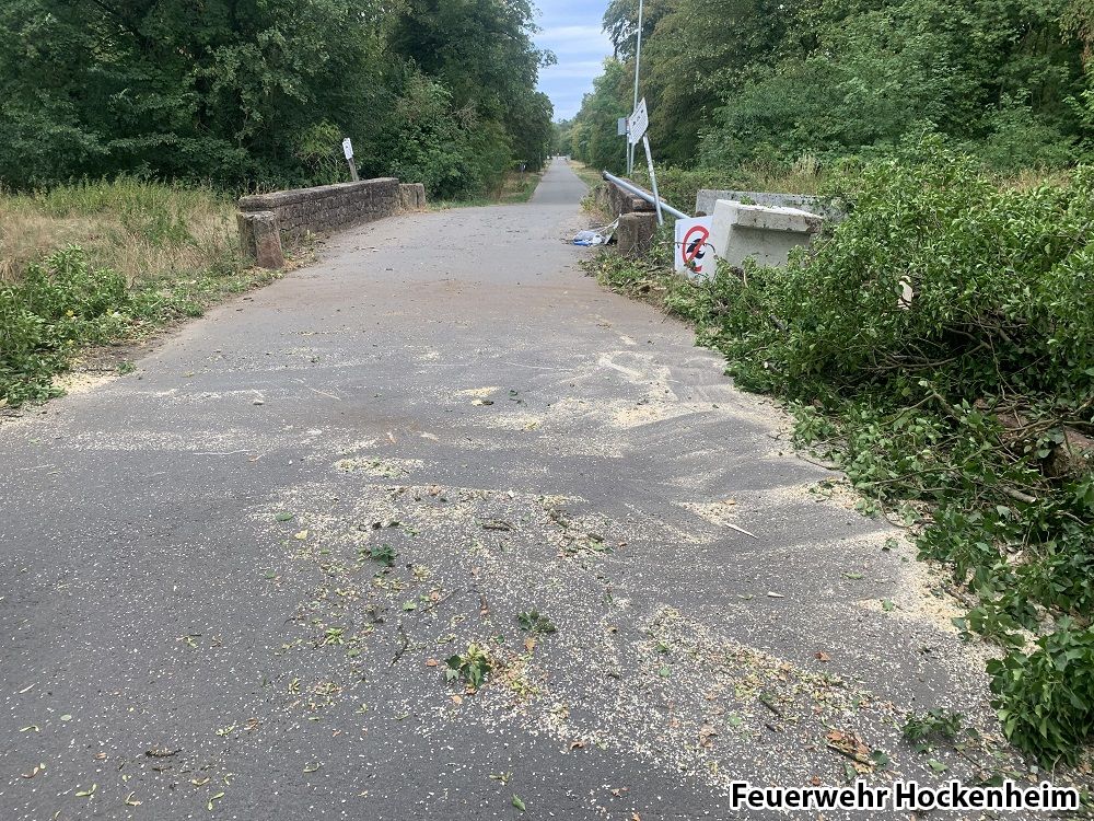 Dort wurde ein umgestürzter Baum sowie eine beschädigte Lampe vorgefunden. Der Baum wurde mittels Kettensäge zerlegt und auf die Seite gelegt. Für die zerstörte Lampe wurde die Hockenheimring GmbH informiert. Diese kommt vorbei und schaut sich den Schaden an.
